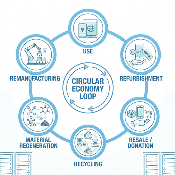 Our approach integrates recycling, regeneration, and circular economy principles into every stage of technology use.